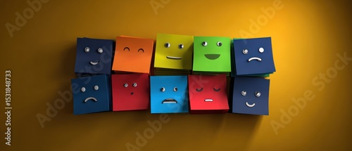 © Mafi, Obraz premium Colorful square emojis on a mustard background