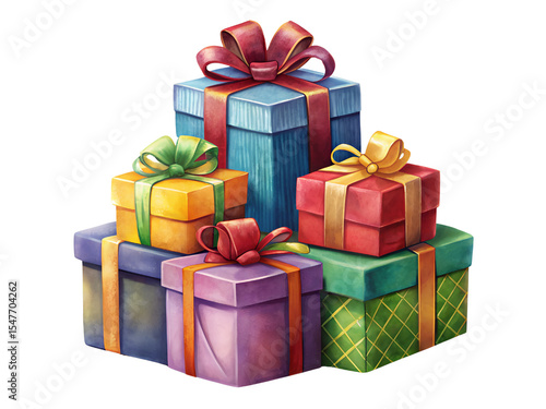 Fototapeta premium Colorful Stack of Wrapped Gifts with Ribbons and Bows