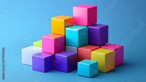 © rehan, Obraz premium Colorful stacked cubes on a plain background.