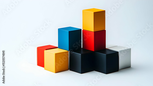 © Fadil, Obraz premium Colorful Stacked Cubes On White Background