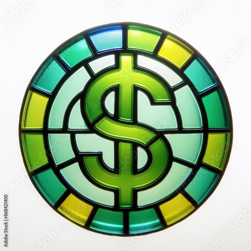 © GeorgV, Obraz premium Colorful Stained Glass Featuring Dollar Symbol