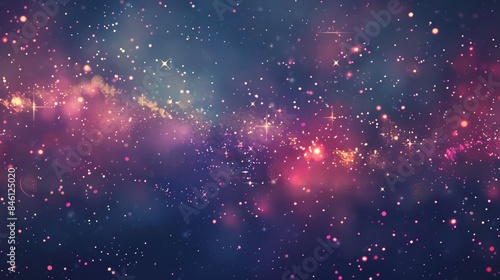 Naklejka premium Colorful, star-filled galaxy in space with pink and purple hues, showcasing cosmic beauty and infinite universe sparkles.