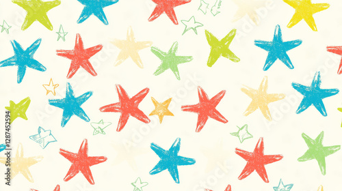 Obraz premium Colorful star patterns on light background create playful atmosphere