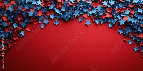 Obraz premium Colorful star-shaped decorations in red and blue create a festive background...
