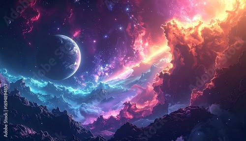 Naklejka premium Colorful, starry alien landscape