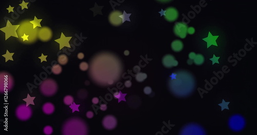 © vectorfusionart, Obraz premium Colorful stars and bokeh image over dark background