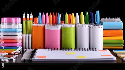 Obraz premium Colorful stationery and notebooks arranged for organization and study.