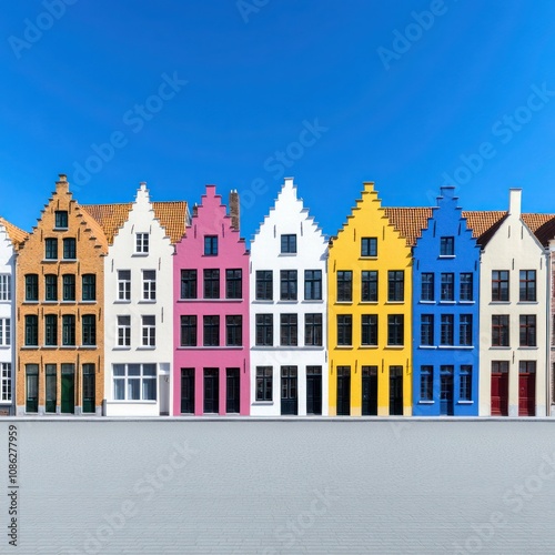 © Tuong, Fototapeta premium Colorful Stepped Gables Panorama at Bruges Markt Square, Belgium - Web Banner