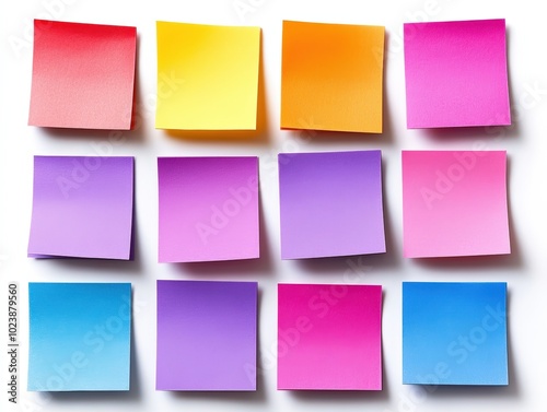 © GenBy, Fototapeta premium Colorful sticky notes arranged in a grid on a white isolate background.