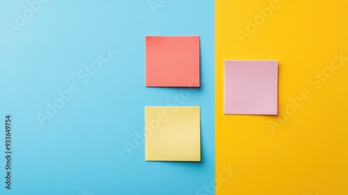 Fototapeta premium Colorful Sticky Notes on Blue and Yellow Background
