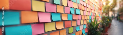 Fototapeta premium Colorful Sticky Notes Wall Urban Cityscape Creative Ideas