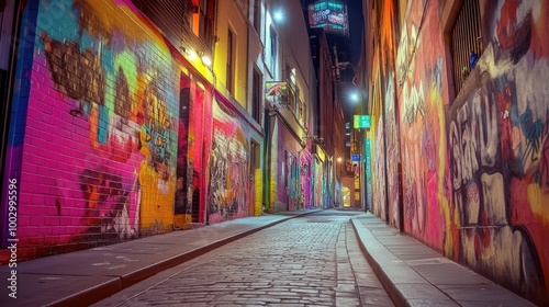 Fototapeta premium Colorful Street Art in Urban Alley at Night
