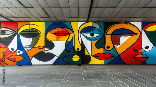 © RISHAD, Naklejka premium Colorful street art of abstract faces.