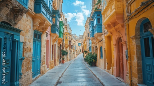 © ndandut, Fototapeta premium Colorful street, Mediterranean architecture