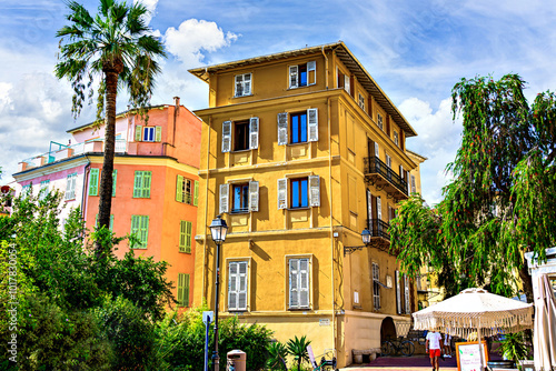 © Toni, Fototapeta premium Colorful streets of the historic center of the city of Menton on the French Riviera, Cote d'Azur, France