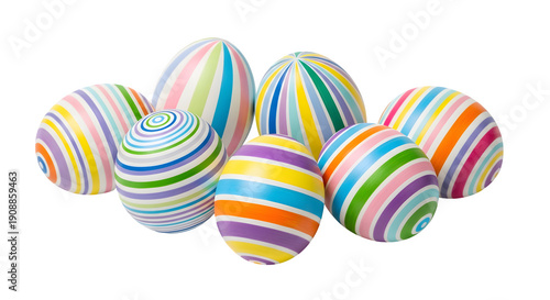© Babar, Obraz premium Colorful striped easter eggs isolated on transparent background