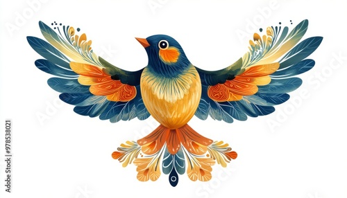 © Meli, Obraz premium Colorful Stylized Bird With Intricate Feather Pattern