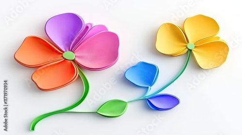 Fototapeta premium Colorful, stylized flowers crafted from layered materials, showcasing vibrant...