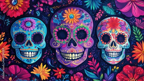 Naklejka premium Colorful Sugar Skulls, Day of the Dead