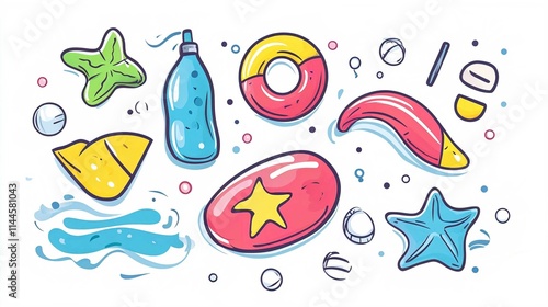 © Sam, Naklejka premium Colorful Summer Beach Food Icons Vector Set for Vacation and Travel Illustration