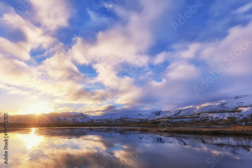 Fototapeta premium Colorful sunrise near Grundarfjordur town, Iceland