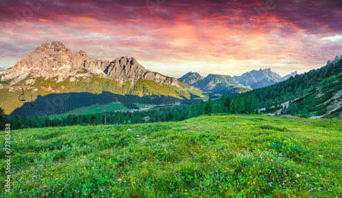© Andrew Mayovskyy, Obraz premium Colorful sunrise on the Cristallo group range