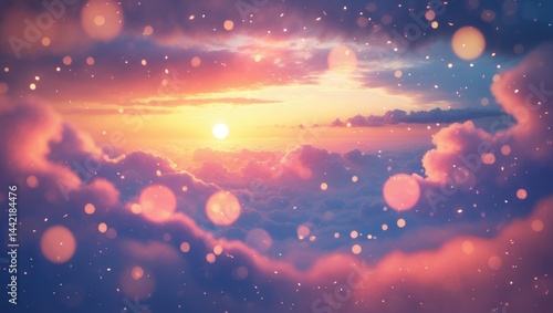 © -Quantum Pixels-, Fototapeta premium Colorful Sunset and Rain Showers in a Blurry Background Above a Dramatic Horizon