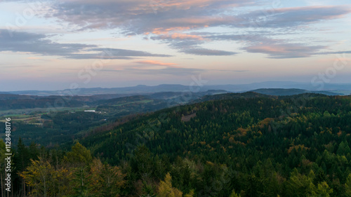 Obraz premium Colorful sunset in the Krkonoše foothills, Žaltman, Czech Republic.
