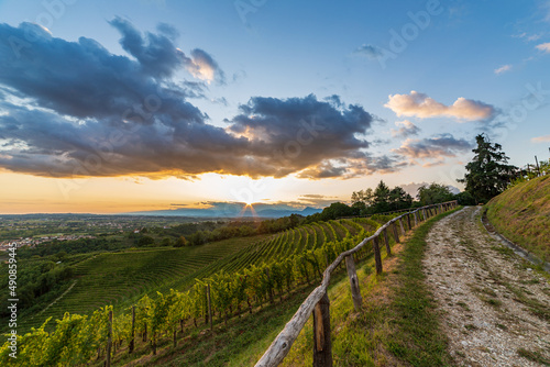 Naklejka premium Colorful sunset in the vineyards of Savorgnano del Torre