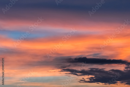 © Andrey, Fototapeta premium Colorful sunset on a beautiful summer sky with dark evening clouds after rain