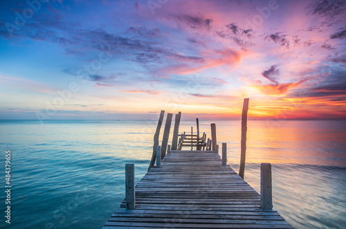 © Nakornthai, Fototapeta premium Colorful sunset on the sea at Trat province, Thailand.
