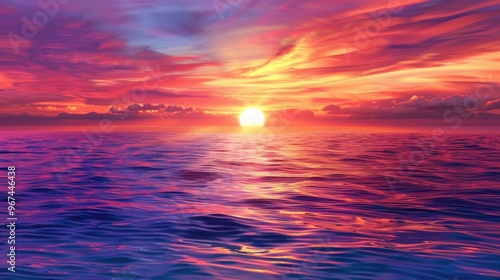 © AbstractAI, Fototapeta premium Colorful sunset on the sea coast Scenic sunrise over water