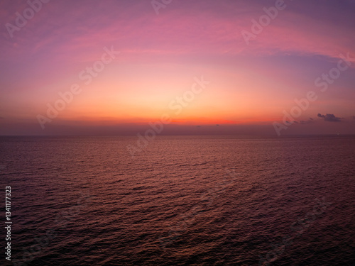 Naklejka premium Colorful sunset or sunrise sky clouds over sea, Amazing nature landscape seascape,Beautiful light nature landscape colorful sky background,High angle view drone shot