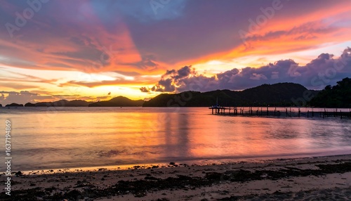 Fototapeta premium Colorful sunset over a calm bay