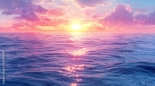 © Teresaart, Obraz premium Colorful Sunset Over Calm Ocean Waters with Dramatic Sky Effects