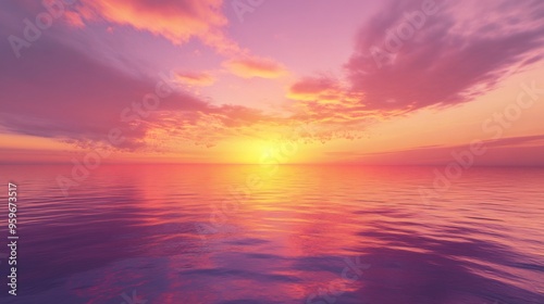 © Wish Craft Arts, Obraz premium Colorful sunset over calm water with a vibrant sky, reflecting on the surface.