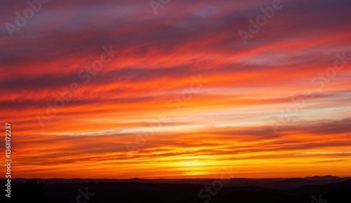 Fototapeta premium Colorful sunset over horizon with dramatic clouds, showcasing nature's beauty...