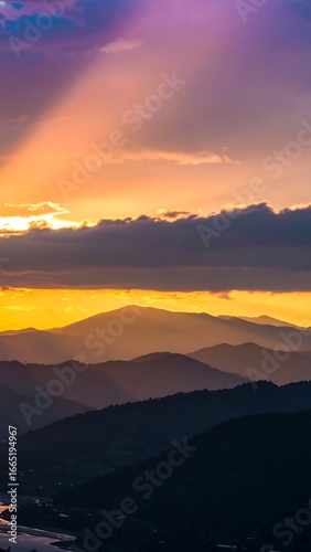 Obraz premium Colorful sunset over mountain ranges
