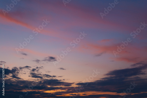 Fototapeta premium Colorful sunset sky over the horizon. Layered clouds.