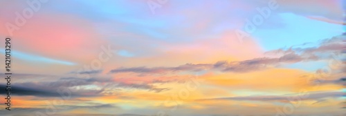 © Khamidhilal, Obraz premium Colorful sunset sky with soft clouds