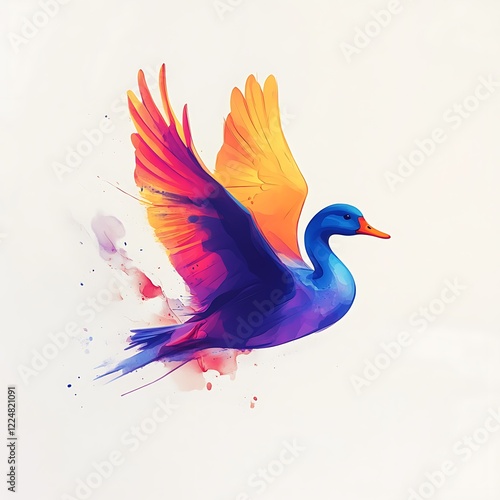 Obraz premium Colorful swan flying, abstract art, ethereal background, digital illustration, visual design