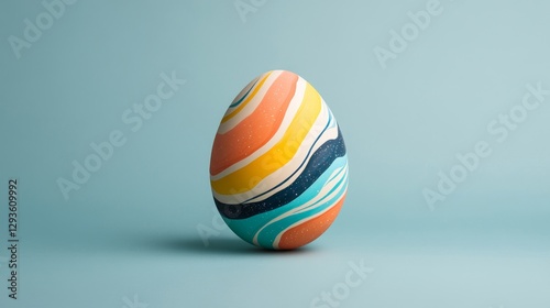 © อาริษา วันดี, Obraz premium Colorful Swirled Easter Egg on Soft Blue Background