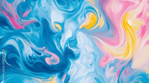 Fototapeta premium Colorful swirling patterns in shades of blue, pink, and yellow create a...