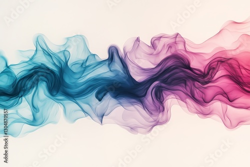 © Antonia, Fototapeta premium Colorful swirling smoke creates an abstract design in shades of blue and pink on a light background