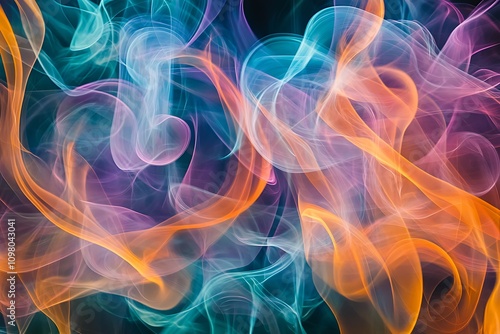 © Pumapala, Obraz premium Colorful swirling smoke patterns create an abstract, dynamic visual effect.