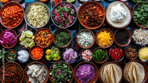 Fototapeta premium Colorful Taco Spread with Vibrant Toppings