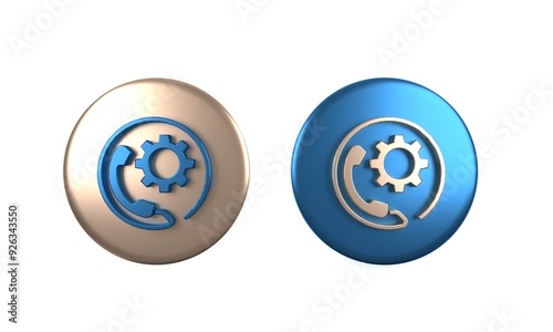 © Kostiantyn, Fototapeta premium Colorful Telephone 24 hours support icon isolated on white background. All-day customer support call-center. Full time call services. Circle button. 3D render illustration