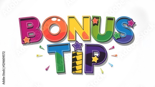 Fototapeta premium Colorful text saying Bonus Tip with playful design elements