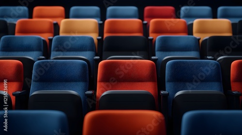 © Cozirlax, Fototapeta premium Colorful Theater Seats in Dynamic Composition with Contrasting Light and Shadows