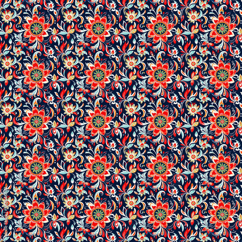 Fototapeta premium Colorful tie dye shibori print. Seamless hand drawn boho batik pattern. Modern batik wallpaper tile. Watercolor pattern for fabric, clothes,Rug Texture